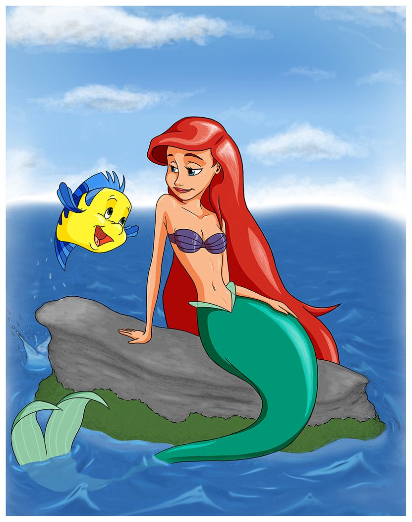 An Illustration of Ariel and Flounder from The Little Mermaid. Printed on satin light cardstock. Please include your current address for shipping.
